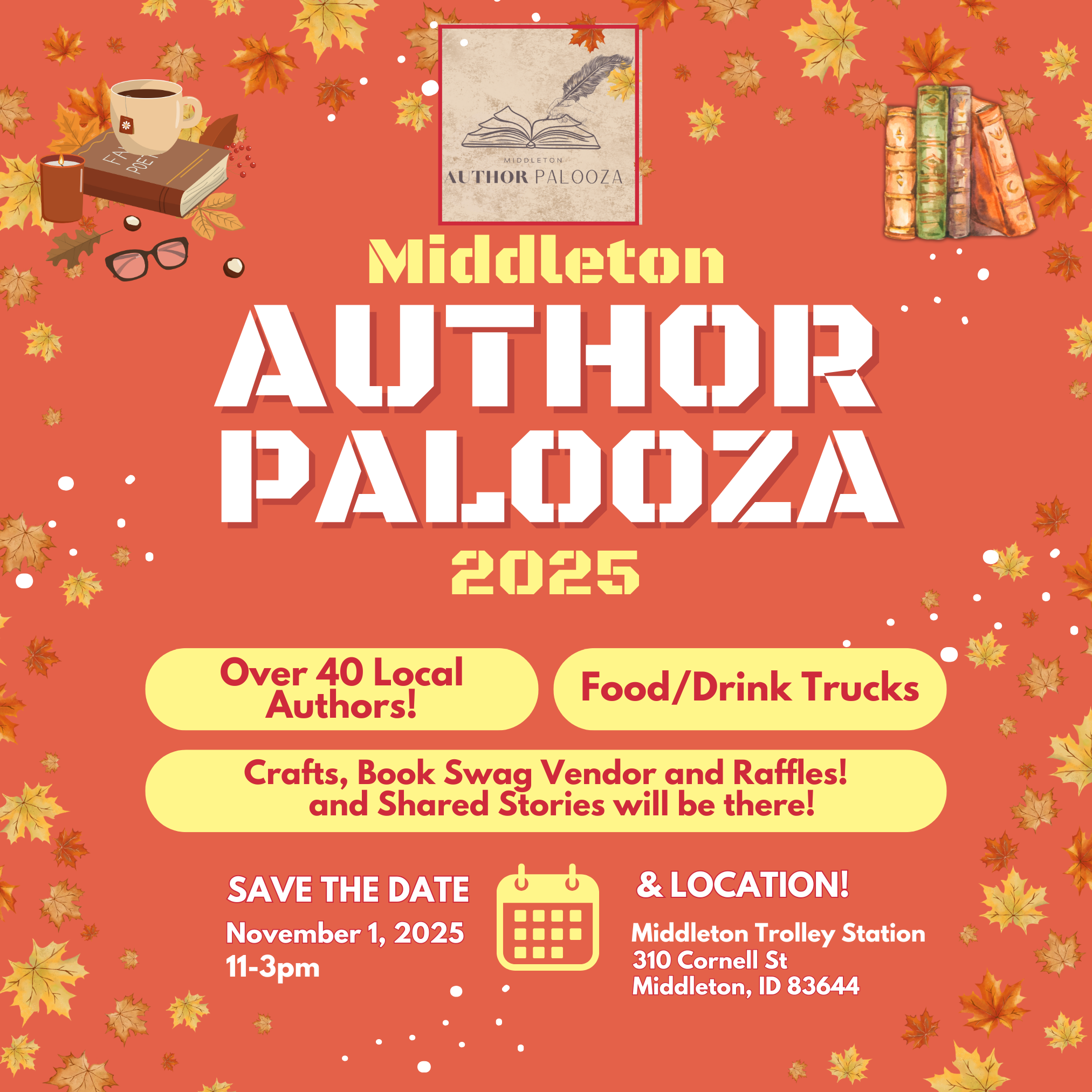 This was my third year signing at the Middleton Author Palooza. It’s really a great little signing in the heart of downtown Middleton, ID and it just keeps getting better. Looking forward to next year!